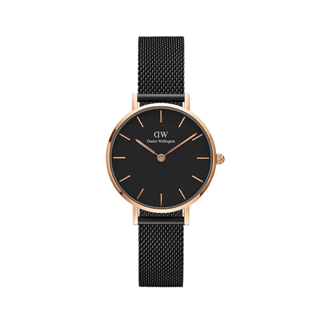 ELEGANT AND DISTINGUISHED. Enter the new season in timeless fashion with Petite Ashfield. This ultra-thin watch rests delicately on the arm and features a matte black mesh strap and a sophisticated black dial. Available with details in rose gold or silver.